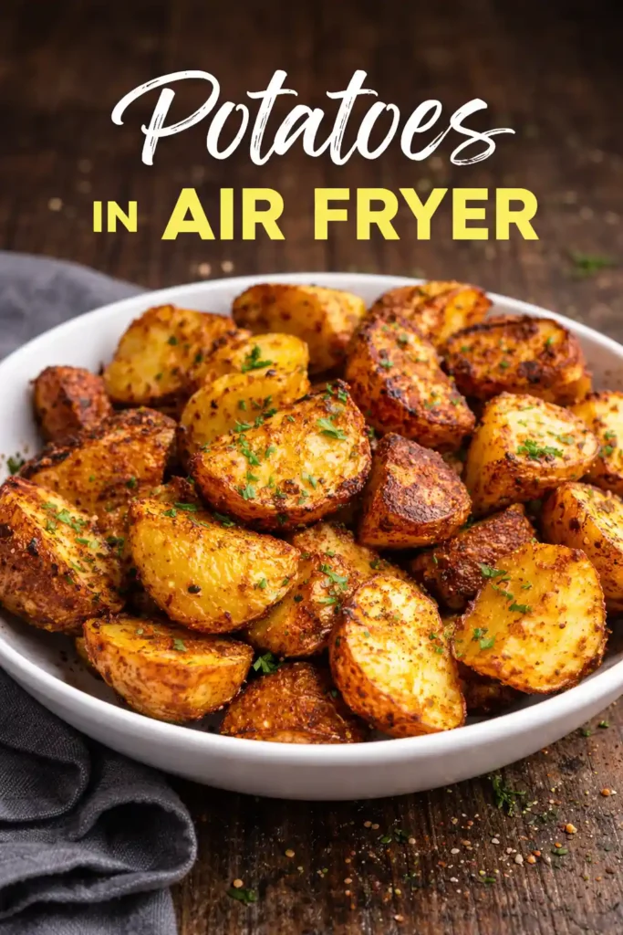 Air fry for 18–22 minutes, shaking the basket halfway through. The potatoes should be golden brown, crispy on the outside, and fork-tender inside.