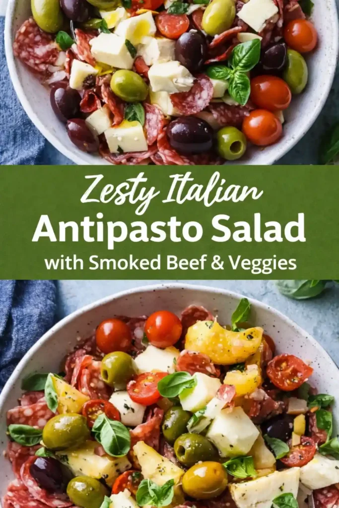 This antipasto salad is a colorful, flavor-packed dish that brings all the best Italian-inspired bites into one easy bowl. Crisp lettuce, marinated vegetables, creamy mozzarella, and savory beef salami come together with a zesty homemade dressing for a salad that’s anything but boring. It’s perfect for quick lunches, light dinners, potlucks, or meal prep when you want something fresh but satisfying. With minimal cooking and big, bold flavors, this recipe is a lifesaver for busy days—and it looks stunning on the table too. If you love hearty salads that eat like a full meal, this antipasto salad will quickly become a favorite.