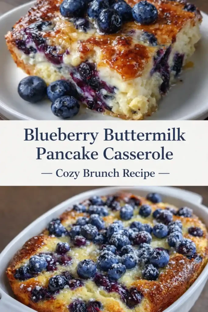 This blueberry buttermilk pancake casserole is everything you love about classic pancakes—fluffy texture, tangy buttermilk flavor, and juicy blueberries—baked into one easy, sliceable dish. Perfect for weekend brunch, holiday mornings, or meal prep breakfasts, it saves you from standing over the stove flipping pancakes one by one. Just mix, pour, bake, and enjoy warm, golden comfort straight from the oven. The buttermilk keeps it tender, while bursts of blueberries add natural sweetness in every bite. Whether you’re feeding a family or hosting guests, this casserole delivers homemade flavor with minimal effort—exactly what busy mornings need.