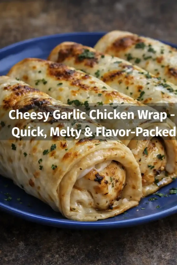 This cheesy garlic chicken wrap is everything you want in a fast, satisfying meal—melty cheese, juicy garlic chicken, and warm toasted wraps all rolled into one irresistible bite. It’s perfect for busy weeknights, easy lunches, or casual dinners when you want something comforting without spending hours in the kitchen. Made with simple ingredients and ready in under 30 minutes, this wrap delivers big flavor with minimal effort. Crispy on the outside, cheesy on the inside, and packed with garlicky goodness, it’s exactly the kind of recipe Pinterest readers love to save and remake.