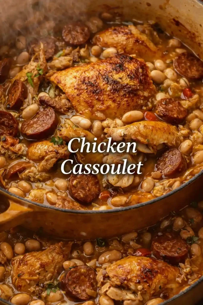 Warm, rich, and deeply satisfying, Chicken Cassoulet is a rustic French-inspired dish that turns simple ingredients into a cozy, slow-cooked meal. Tender chicken, creamy white beans, and aromatic herbs simmer together to create a comforting stew perfect for family dinners or relaxed weekend cooking. This version keeps things approachable and time-friendly while still delivering that classic cassoulet flavor. It’s a fantastic make-ahead meal and tastes even better the next day. If you’re looking for an easy comfort-food recipe that feels a little special but still fits into a busy schedule, this chicken cassoulet is a Pinterest-worthy favorite.