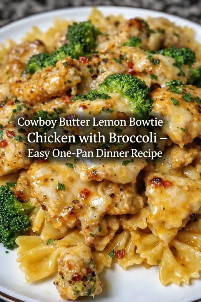 This Cowboy Butter Lemon Bowtie Chicken with Broccoli is a weeknight dinner dream—bold flavors, simple ingredients, and ready fast. Tender chicken is coated in rich cowboy butter infused with lemon, garlic, and herbs, then tossed with bowtie pasta and crisp broccoli for a perfectly balanced meal. It’s hearty enough for family dinner, impressive enough for guests, and easy enough for busy nights. If you love lemon chicken pasta recipes or one-pan-style comfort meals, this dish checks every box. Bright, buttery, and satisfying, it’s the kind of recipe you’ll save and come back to again and again.