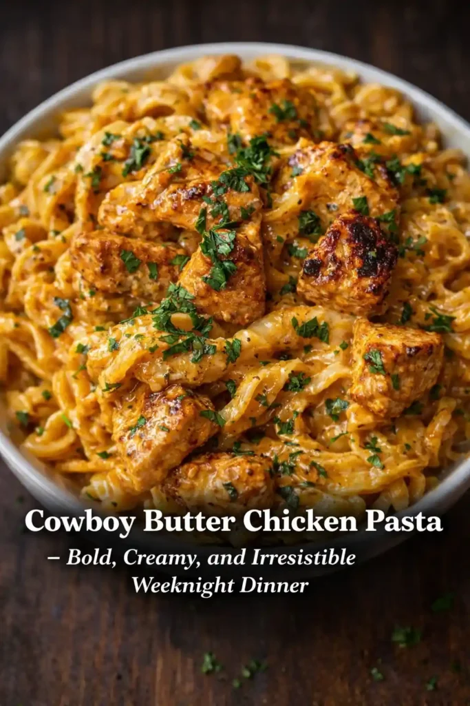 This Cowboy Butter Chicken Pasta is rich, creamy, and packed with bold flavors that feel straight out of a steakhouse—yet it’s easy enough for a busy weeknight. Juicy chicken, tender pasta, and fresh spinach are tossed in a buttery garlic sauce with herbs, lemon, and a touch of heat for that signature cowboy butter kick. It’s comforting, crowd-pleasing, and comes together fast with simple ingredients. If you love creamy chicken pasta and easy one-pan dinners, this recipe is guaranteed to land on repeat 🍝✨.