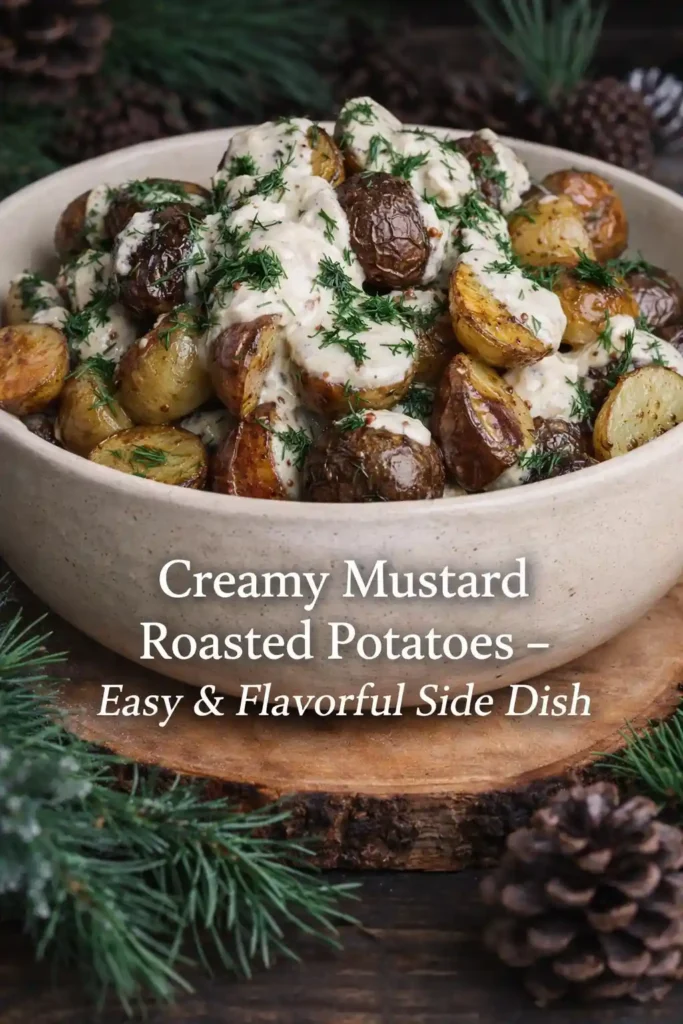 - Combine & finish. Pour creamy mustard sauce over hot roasted potatoes and gently toss. Garnish with herbs if desired. ✨