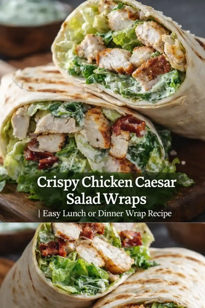 These crispy chicken Caesar salad wraps are everything you love about a classic Caesar—just wrapped up in a handheld, crave-worthy meal. Golden, crunchy chicken pairs perfectly with cool romaine, creamy Caesar dressing, and a sprinkle of Parmesan, all tucked into a soft tortilla. They’re ideal for quick lunches, easy dinners, or meal prep for busy weeks. Ready in about 30 minutes, this recipe delivers bold flavor with minimal effort, making it a go-to when you want something satisfying, fresh, and totally family-friendly.