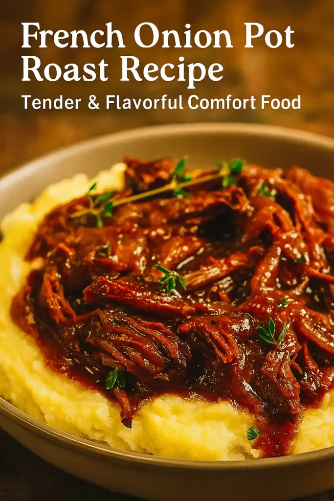 Here’s your Pinterest-ready French Onion Pot Roast—ultra-tender beef simmered in a savory, onion-forward gravy with just the right amount of melt-in-your-mouth comfort. This recipe brings together richly caramelized onions, broth, herbs, and a slow braise to create an effortless dinner that tastes gourmet. Perfect for busy weeknights, Sunday suppers, or any time you want a cozy, elegant one-pot meal without the fuss. With just a few simple steps and pantry staples, you’ll enjoy delicious, fall-apart beef that pairs beautifully with mashed potatoes, rice, or rustic bread. 😍