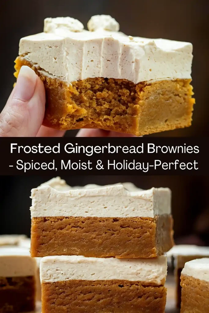 These Frosted Gingerbread Brownies bring together everything you love about classic brownies—fudgy centers, chewy edges—with the cozy holiday flavors of gingerbread. Warm spices like ginger, cinnamon, and cloves melt beautifully into a rich molasses brownie base, while a creamy vanilla frosting adds the perfect sweet finish. They’re festive enough for holiday parties yet simple enough for everyday baking. Best of all, they stay moist for days, making them a fantastic make-ahead treat for busy bakers!