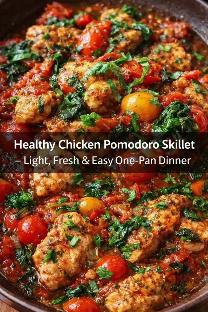 This Healthy Chicken Pomodoro Skillet is fresh, vibrant, and full of classic Italian-inspired flavor without feeling heavy. Juicy chicken is simmered in a bright tomato-basil sauce with garlic and olive oil for a meal that’s wholesome, satisfying, and perfect for busy nights. Everything cooks in one skillet, making cleanup easy while still delivering bold, slow-simmered taste. If you’re looking for a healthy chicken dinner or a quick Mediterranean-style meal, this recipe checks all the boxes—simple, nourishing, and family-approved 🍃✨.