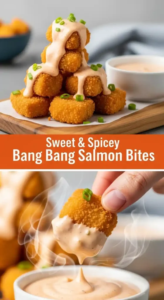 These Homemade Crispy Bang Bang Salmon Bites are everything you want in a quick, flavor-packed meal—tender salmon chunks coated in a light, crispy crust and tossed in a creamy, sweet-spicy bang bang sauce. They make the perfect weeknight dinner, party appetizer, or protein for bowls and salads. With minimal prep and simple ingredients, this recipe is totally doable even on busy days. One bite and you’ll understand why this dish is a viral favorite! 🔥🍣