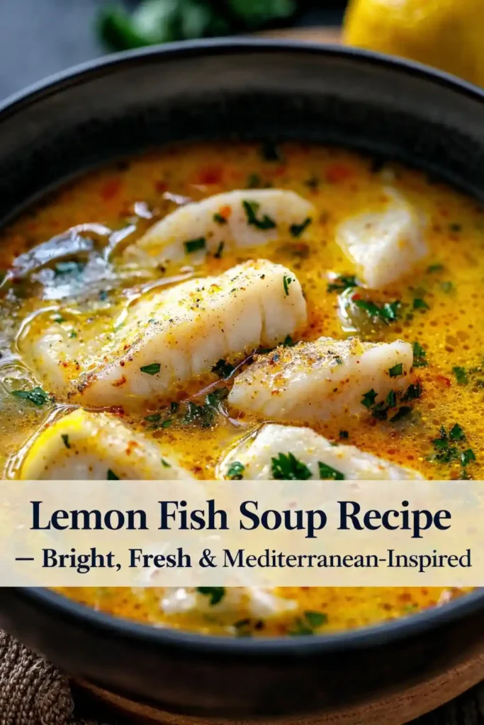 This lemon fish soup is bright, soothing, and full of fresh flavor—perfect when you want something warm but not heavy. Tender white fish gently simmers in a light lemony broth with garlic, herbs, and vegetables, creating a cozy meal that feels both nourishing and elegant. It’s ideal for quick weeknight dinners, light lunches, or when you’re craving comfort without cream. This easy lemon fish soup comes together in one pot and is a Pinterest favorite for its simplicity, freshness, and feel-good ingredients.