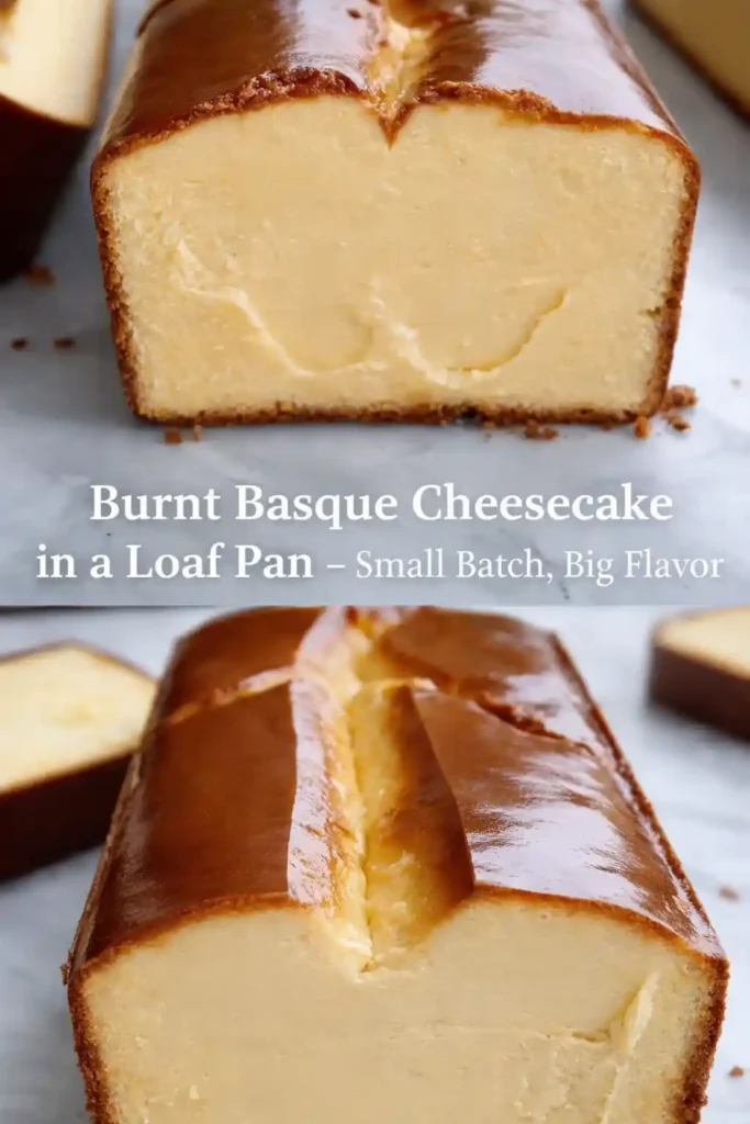 This loaf pan Burnt Basque cheesecake is perfect when you want the iconic caramelized top and ultra-creamy center—without making a full-sized cheesecake. Designed to fit a standard loaf pan, this small-batch version is rustic, rich, and incredibly easy. There’s no crust, no water bath, and no stress—just bold oven heat and simple ingredients that come together fast. It’s ideal for cozy dinners, small gatherings, or anytime you’re craving bakery-style cheesecake without leftovers. Minimal prep, dramatic results, and that signature jiggly center make this a Pinterest-worthy dessert you’ll want to save.