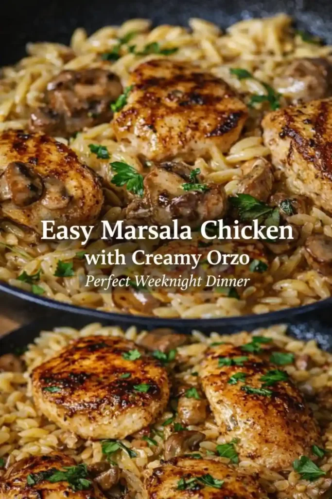This Marsala chicken with creamy orzo is the perfect blend of cozy and classy, making it ideal for weeknight dinners or casual entertaining. Tender chicken simmered in a rich Marsala wine sauce pairs beautifully with creamy, Parmesan-kissed orzo that soaks up every drop of flavor. It feels indulgent yet comes together in one pan, saving time and cleanup—perfect for busy cooks who still want something special. With warm, savory notes and a velvety texture, this dish delivers restaurant-style comfort at home. If you’re looking for an easy chicken dinner that feels elevated, this recipe is a must-save for your Pinterest boards.