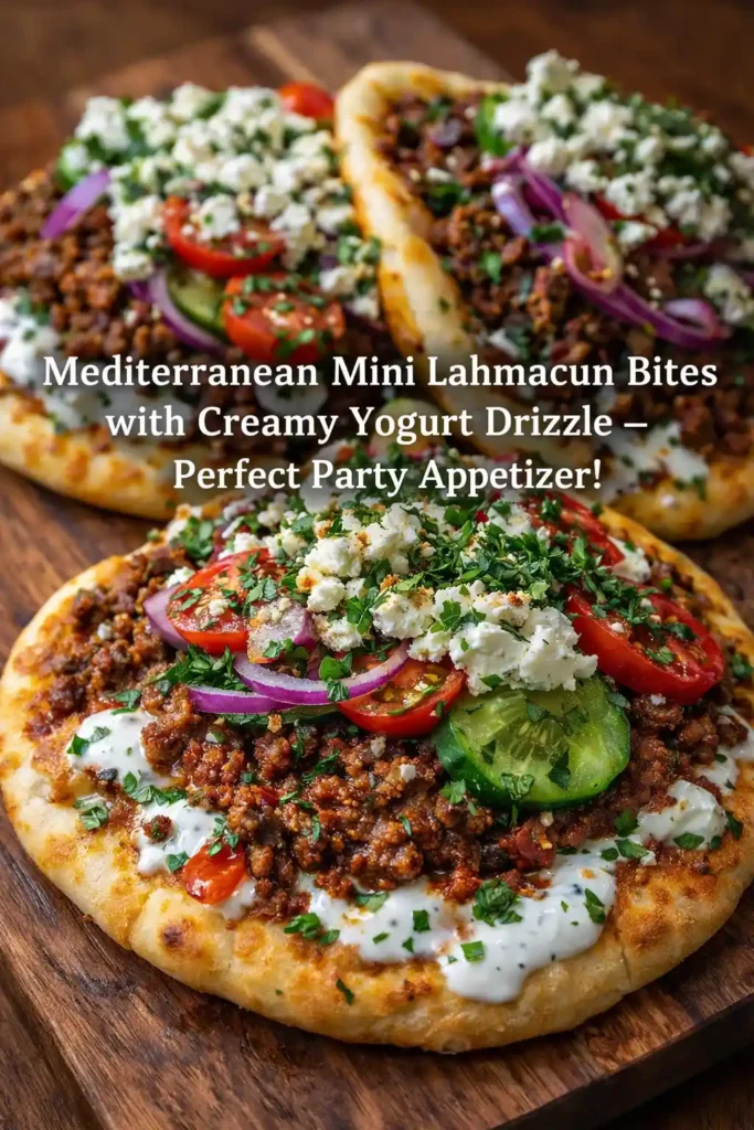 These Mediterranean mini lahmacun bites are the ultimate crowd-pleasing appetizer—crispy, savory, and finished with a cool yogurt drizzle that balances every bold spice. Inspired by classic Middle Eastern flavors, these bite-sized flatbreads are perfect for parties, family gatherings, or an easy mezze-style dinner. They come together quickly using simple ingredients, making them ideal for busy weeknights or last-minute entertaining. Juicy seasoned meat, warm flatbread, and tangy yogurt sauce create irresistible layers of flavor in every bite. If you’re looking for an easy Mediterranean appetizer that feels special without the stress, this recipe delivers big flavor with minimal effort.