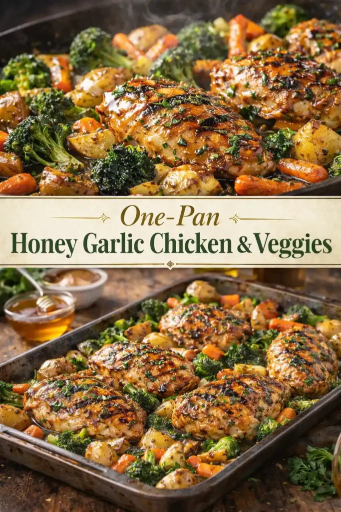 This one-pan honey garlic chicken and veggies is the perfect solution for busy weeknights when you want something delicious without the mess. Juicy chicken is coated in a sticky, sweet-savory glaze and roasted alongside colorful vegetables for a balanced, wholesome meal. This easy sheet pan dinner saves time on both cooking and cleanup while delivering bold flavor in every bite. Whether you’re feeding a family or meal prepping for the week, this dish is simple, satisfying, and guaranteed to become a go-to favorite.