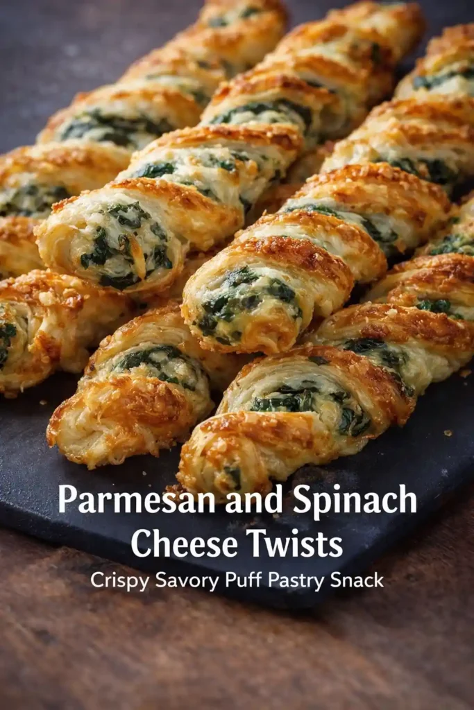These Parmesan and spinach cheese twists are golden, flaky, and packed with savory flavor in every bite. Made with buttery puff pastry, melty Parmesan, and vibrant spinach, they’re the perfect balance of crispy edges and cheesy centers. Ideal for parties, snack boards, or an easy side for soups and salads, these twists come together quickly with minimal prep. They’re especially great for busy days when you want something homemade but effortless. Serve them warm from the oven and watch them disappear—this is one simple recipe that always delivers big flavor with very little work.