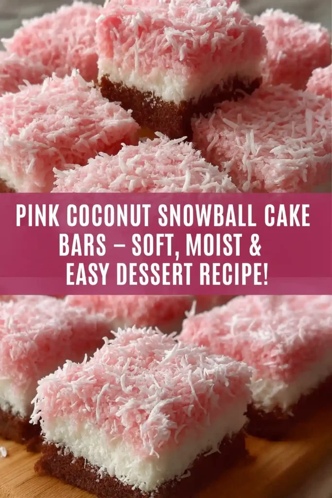 These Pink Coconut Snowball Cake Bars are a dreamy treat perfect for parties, holidays, or whenever you’re craving something soft, chewy, and irresistibly coconut-y. With their pretty pastel color and melt-in-your-mouth texture, they’re a guaranteed crowd-pleaser—and they come together with simple pantry ingredients for stress-free baking. The bars are tender like cake, gooey like snowballs, and packed with nostalgic flavor that makes every bite feel special. Whether you’re serving them at a baby shower, Valentine’s celebration, or just a fun weekend bake, these sweet bars are an easy, make-ahead favorite you’ll want to save to your dessert board. 🌸✨