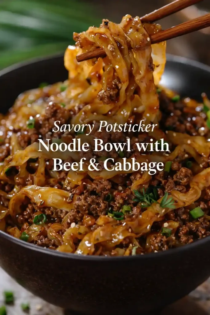 This potsticker noodle bowl with beef and cabbage brings all the flavors you love from dumplings into one easy, satisfying bowl. Juicy seasoned beef, tender cabbage, and silky noodles are simmered together in a gingery, garlicky broth that tastes like comfort food magic. It’s perfect for busy weeknights when you want something hearty but still simple, and it comes together in one pot for easy cleanup. Think cozy takeout vibes—without the wait. Every bite is warm, savory, and irresistibly comforting.