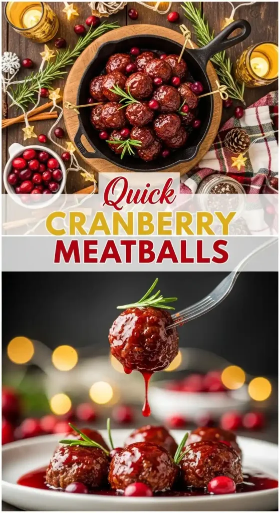 These Quick Cranberry Meatballs are the ultimate solution for fast, delicious entertaining—juicy, tender beef meatballs simmered in a glossy cranberry-BBQ sauce that’s equal parts sweet, tangy, and irresistible. Perfect for potlucks, game nights, or last-minute guests, this recipe uses simple ingredients and comes together in minutes, making it ideal for busy home cooks. The cranberry sauce adds a festive flair, while the savory beef keeps everything hearty and satisfying. Whether you serve them as appetizers or over rice for a quick dinner, these meatballs always disappear first!