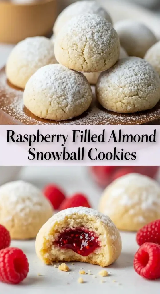 These Raspberry Filled Almond Snowball Cookies are the perfect blend of buttery almond goodness and a burst of sweet berry flavor inside. They’re melt-in-your-mouth delicious, look absolutely adorable on any holiday or party tray, and come together quickly for busy bakers who love impressive treats without the stress. With their tender crumb, cozy winter vibe, and powdered-sugar “snow” finish, these cookies feel both nostalgic and magical. Whether you’re prepping for cookie exchanges, gifting homemade sweets, or simply craving a charming bite-sized dessert, these raspberry-filled snowballs will definitely become a new favorite.
