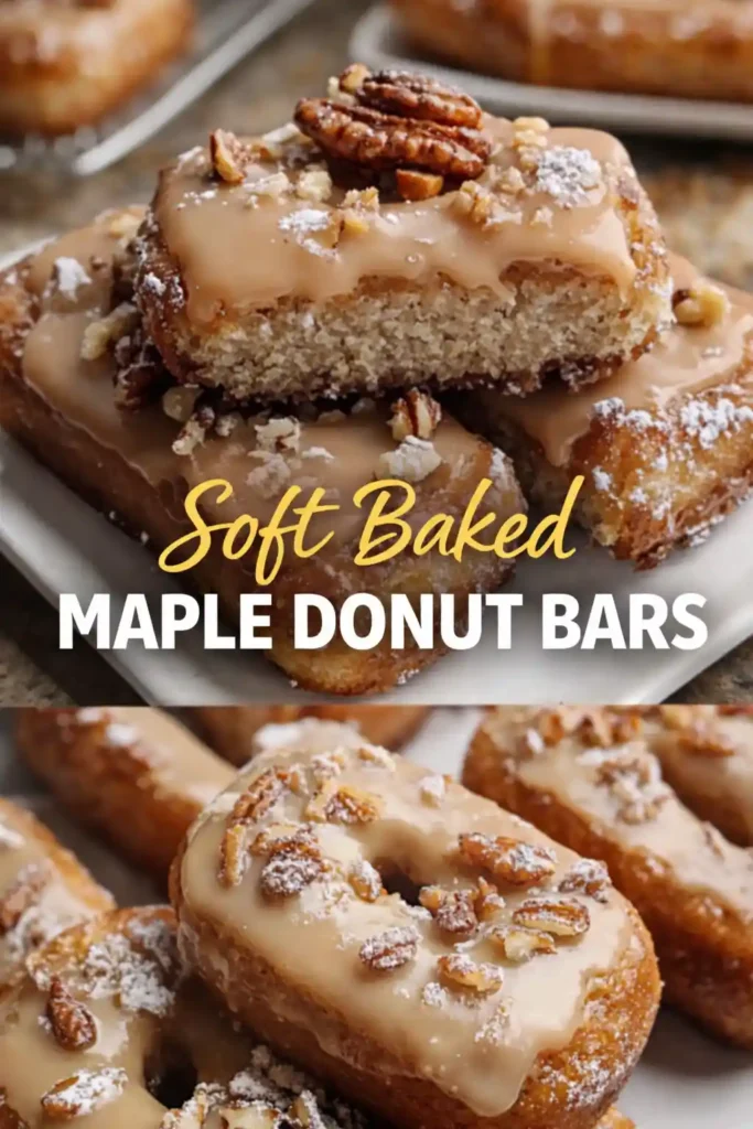 These soft baked maple donut bars are everything you love about classic donuts—sweet, fluffy, and full of cozy maple flavor—but baked instead of fried. The result is a tender, cake-like bar topped with a silky maple glaze that melts slightly into every bite. Perfect for fall mornings, weekend brunch, or an easy homemade dessert, these donut bars come together quickly with simple pantry ingredients. If you love baked donut recipes or warm maple desserts, this treat will quickly become a favorite. Plus, baking them in a pan makes the process much easier than shaping traditional donuts.