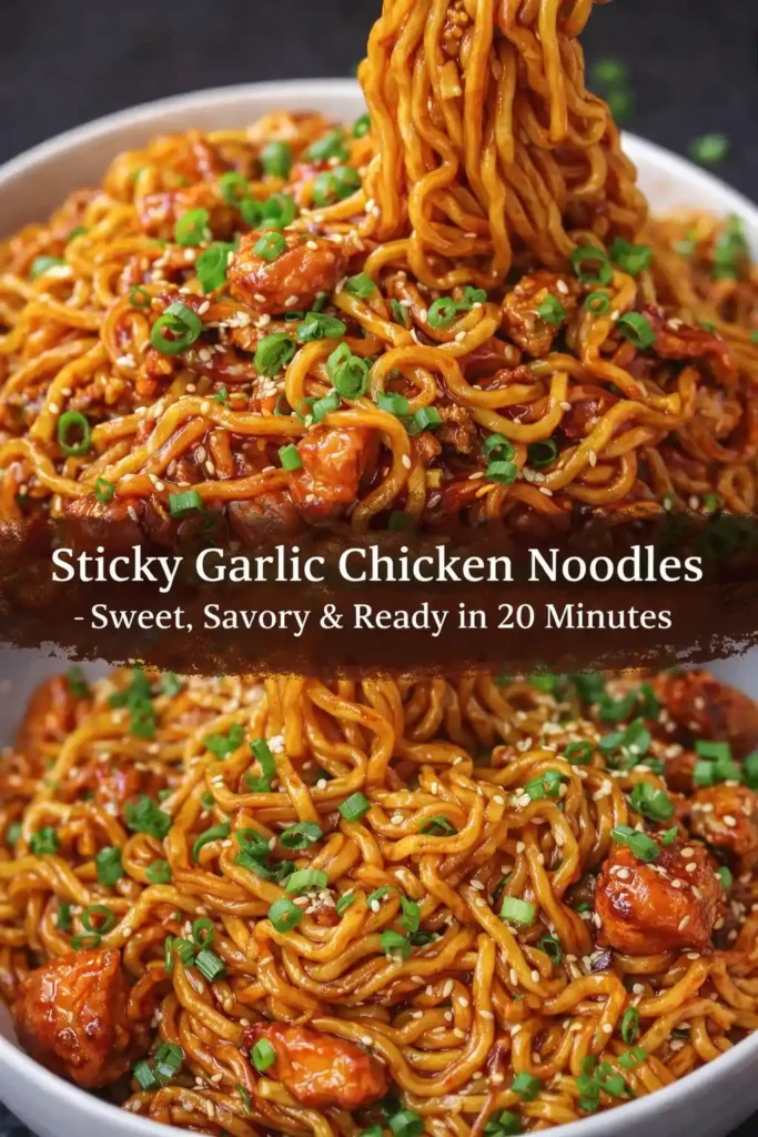 These sticky garlic chicken noodles are the kind of weeknight dinner that feels better than takeout. Juicy chicken, chewy noodles, and a glossy garlic sauce come together in one pan for a meal that’s bold, comforting, and incredibly satisfying. The sauce is perfectly balanced—sweet, savory, and packed with garlicky flavor that clings to every noodle. Ready in under 30 minutes, this recipe is ideal for busy nights when you want something fast but still crave-worthy. It’s cozy, crowd-pleasing, and exactly the kind of dish Pinterest readers love saving.
