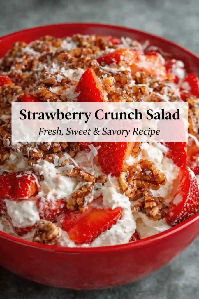 This strawberry crunch salad is the kind of nostalgic, crowd-pleasing dessert that disappears fast at potlucks, holidays, and summer gatherings. With layers of fluffy cream filling, juicy strawberries, and a buttery golden crunch topping, every bite is the perfect balance of creamy and crispy. It’s quick to assemble, made with simple ingredients, and ideal for busy days when you want something impressive without turning on the oven for hours. Whether you’re serving it at a backyard BBQ or as a sweet weeknight treat, this strawberry crunch salad delivers big flavor with minimal effort.
