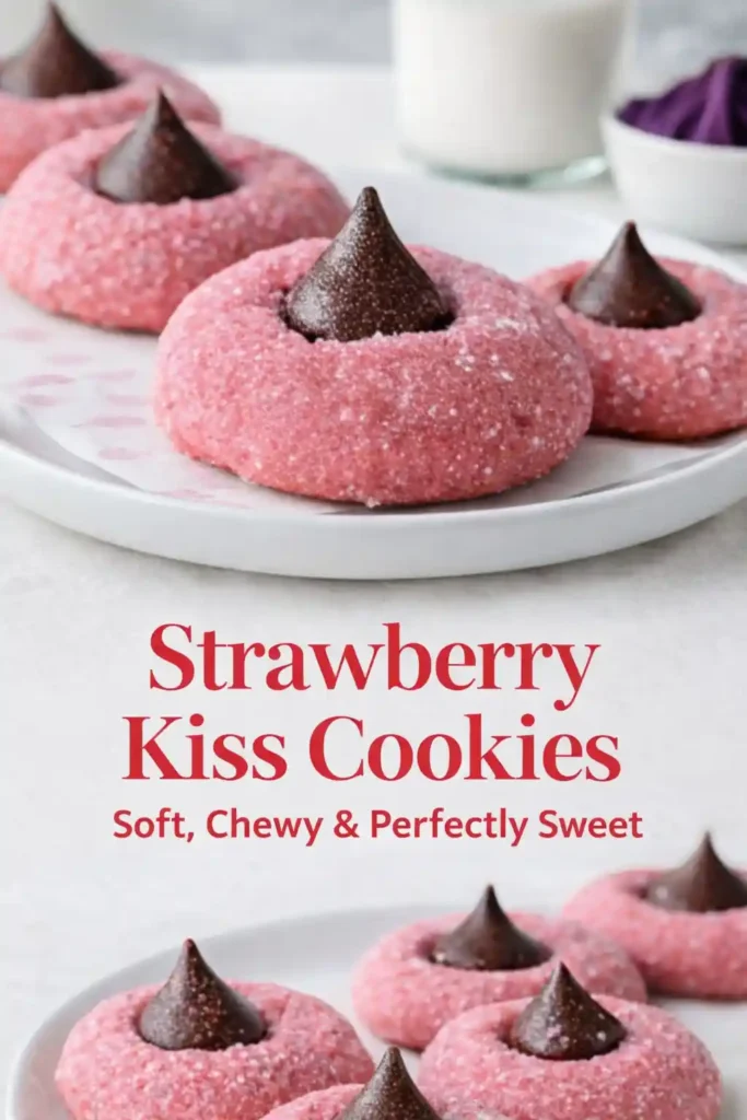 These Strawberry Kiss Cookies are the perfect blend of soft, buttery cookie dough and sweet strawberry flavor, finished with a chocolate kiss right in the center. They’re festive, fun, and incredibly easy—making them ideal for Valentine’s Day, baby showers, holidays, or anytime you want a pretty pink dessert. With just a few pantry staples and a box of strawberry cake mix, these cookies come together fast, saving time while still feeling homemade. Each bite is tender, slightly chewy, and kissed with chocolate goodness. These are the kind of cookies that disappear quickly, so you might want to make a double batch!