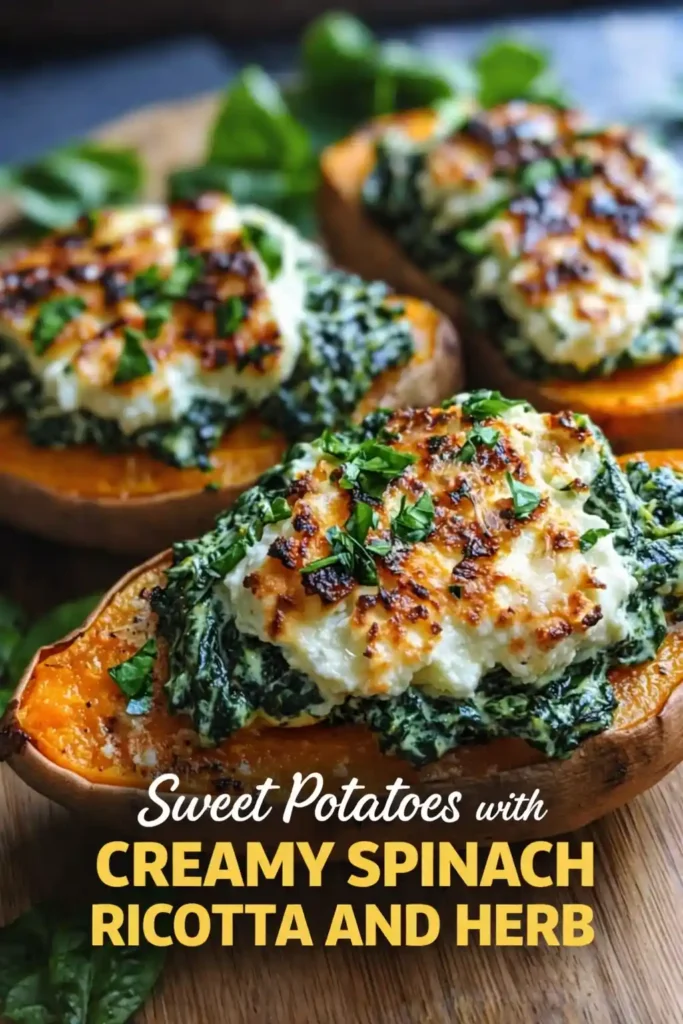 These sweet potatoes with creamy spinach ricotta and herbs are the perfect blend of wholesome comfort and elegant flavor. Tender roasted sweet potatoes are topped with a rich, garlicky spinach ricotta filling that feels indulgent but is surprisingly simple to make. This dish works beautifully as a vegetarian main, a hearty side, or even a meal-prep favorite for busy weekdays. Packed with flavor, color, and nutrients, it’s a go-to when you want something cozy yet fresh. If you love healthy comfort food or easy oven recipes, this one delivers big taste with minimal effort.