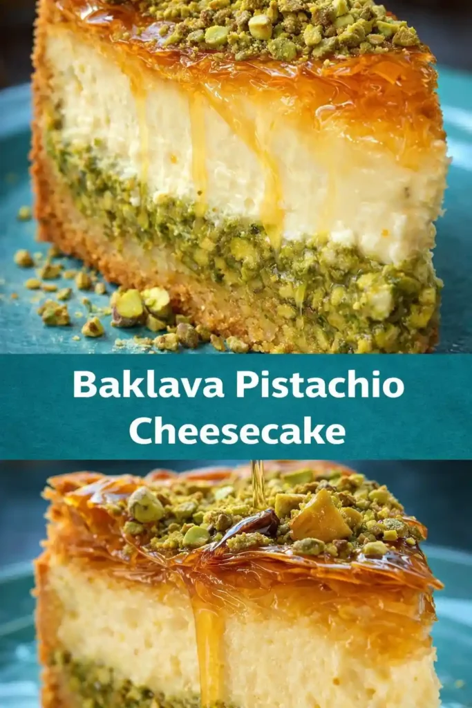 This is hands-down the best baklava pistachio cheesecake you’ll ever make — rich, creamy, flaky, and perfectly balanced. It combines crisp, buttery phyllo layers with finely ground pistachios and a luxuriously smooth cheesecake filling, all finished with a fragrant honey syrup that soaks in just enough without overpowering the dessert. Every bite delivers crunch, creaminess, and warm Middle Eastern flavors. Despite its bakery-level appearance, this recipe is totally achievable at home and ideal for holidays, celebrations, or when you want a dessert that truly impresses. If you’re searching for the ultimate pistachio cheesecake recipe that people will ask you for again and again, this is it.