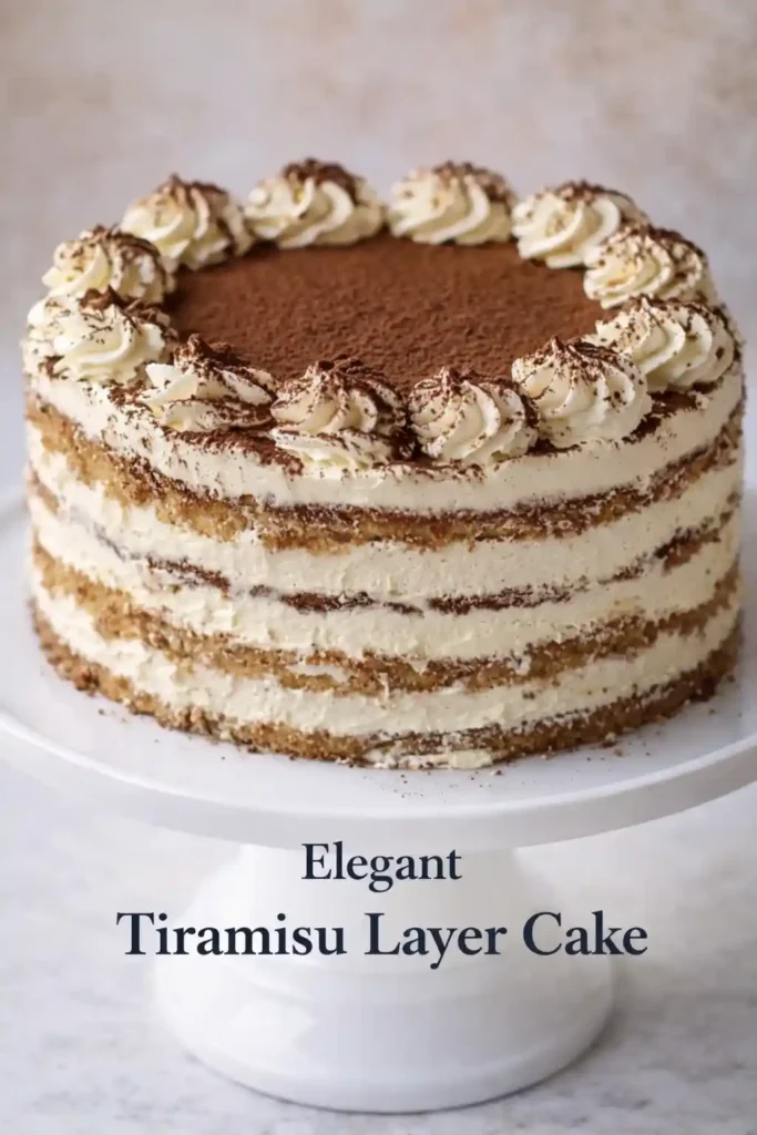 If you adore classic tiramisu but want something celebration-worthy, this Tiramisu Layer Cake is pure dessert heaven. Fluffy vanilla sponge layers are soaked in rich espresso syrup, then stacked high with luscious mascarpone cream frosting and a dusting of cocoa powder. It’s elegant enough for birthdays and dinner parties, yet simple enough for confident home bakers. The flavors deepen as it chills, making it a perfect make-ahead cake for busy schedules. Every bite delivers that signature coffee-kissed, creamy sweetness that tiramisu lovers crave ☕✨